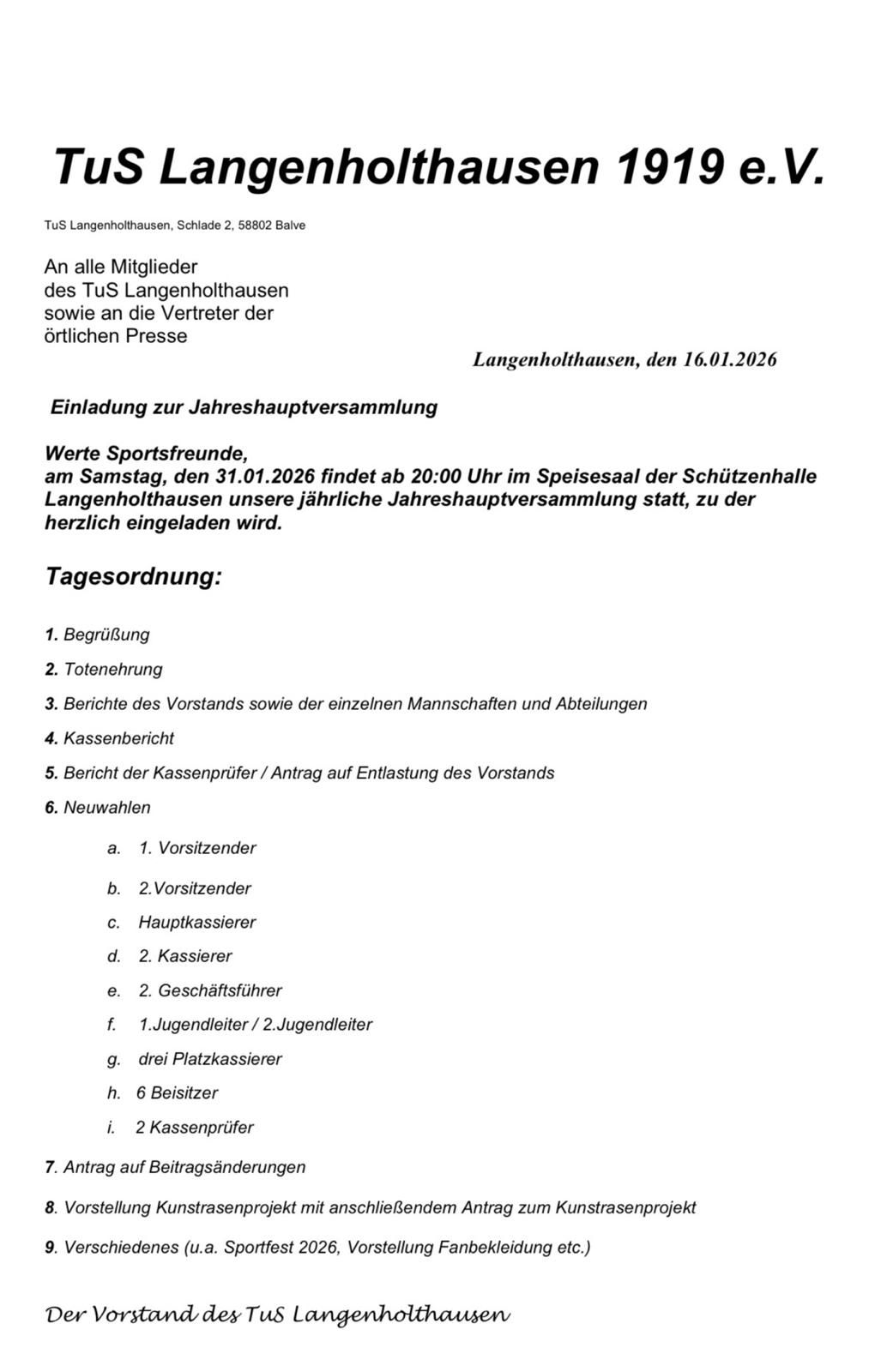Offizielle Einladung zur Jahreshauptversammlung des TuS Langenholthausen 1919 e.V.